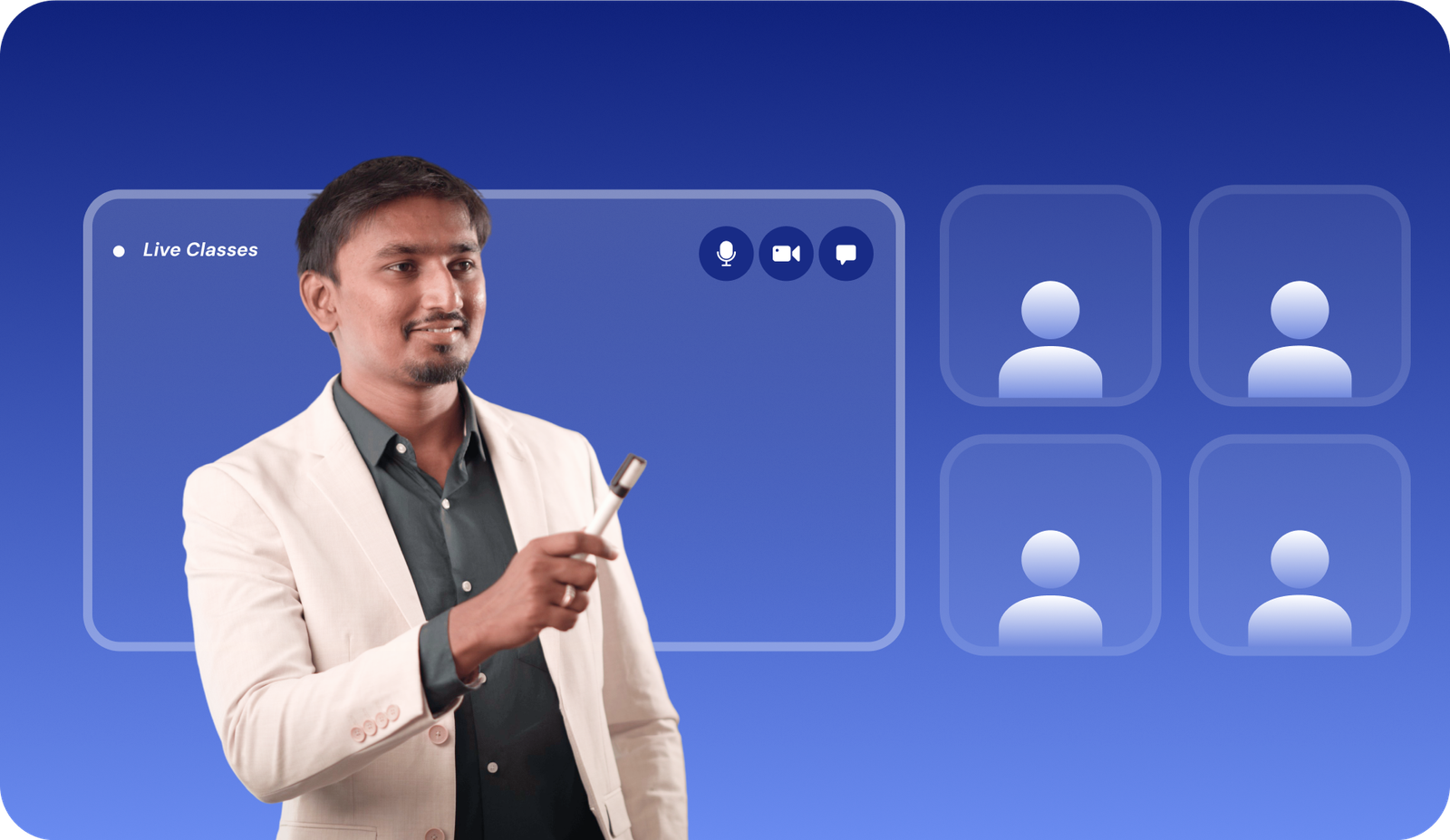 Aapko weekly 3 live classes milti hain hamare saath. Agar aap live class miss kar dete ho, toh har class ki recording aapko next day mil jaati hai — aap kabhi bhi dekh sakte ho.