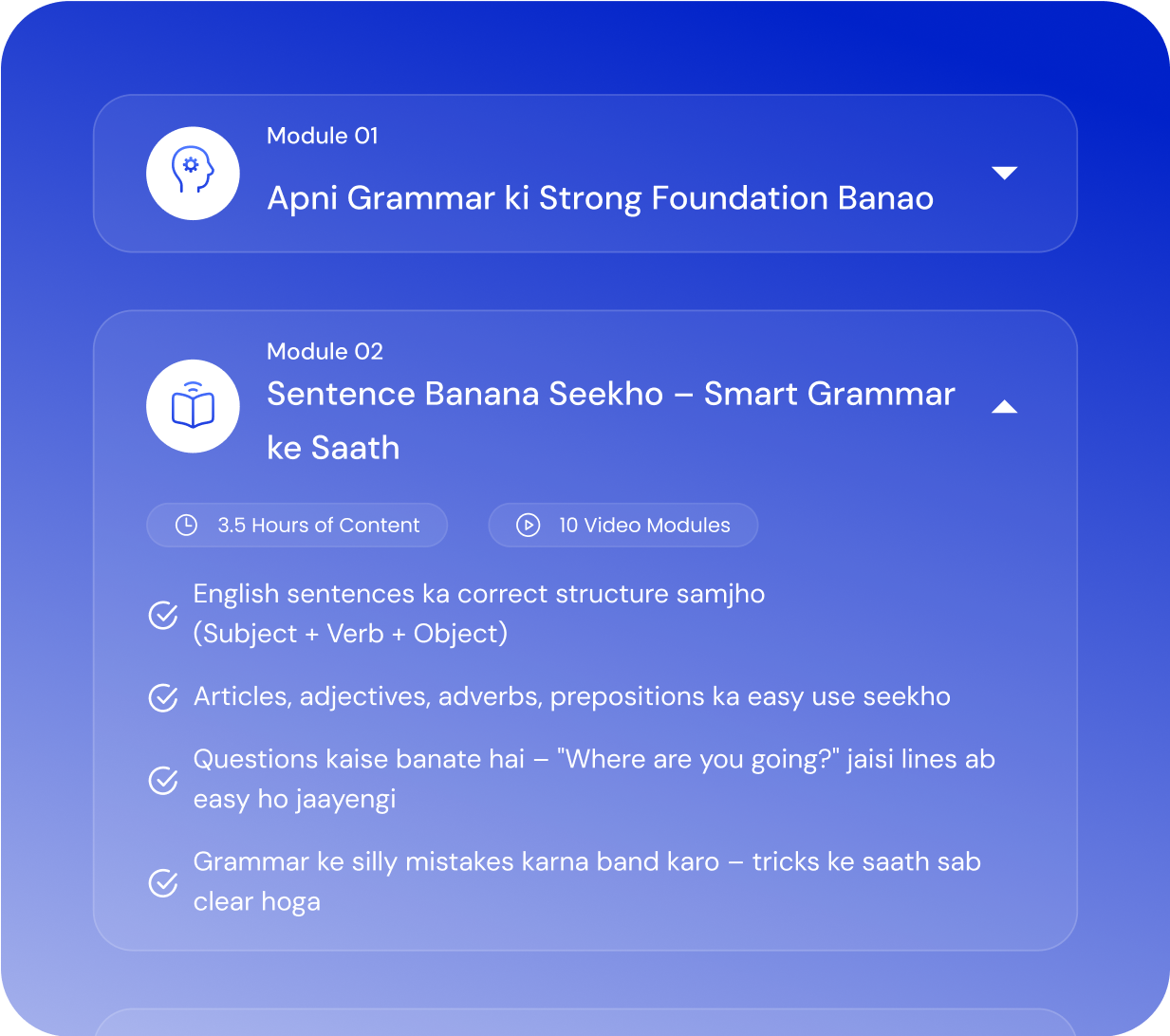 Yeh course specially un logon ke liye design kiya gaya hai jo basic level se start karna chahte hain. Aapko thoda bhi English nahi aati ho toh bhi aap comfortable feel karoge.